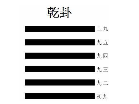 《周易》六十四卦的首卦為乾卦,乾者象征天,因此也就成了代表帝王的卦象。乾卦由六條陽爻組成,是極陽、極盛之相。從下向上數,第五爻稱為九五,九代表此爻為陽爻,五為第五爻的意思。