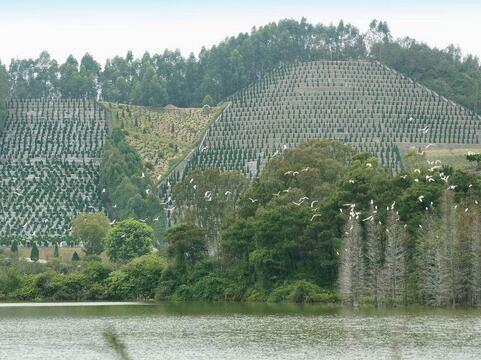 直到現(xiàn)在,烏蛸山上還有一個(gè)僅能盛四個(gè)人的小洞,不過由于長春湖水漲,洞已沒入水下。而那兩瓢麥麩子灑到河里也便成了金,后來人們便到河里去淘金,無論怎么淘,這金卻總也淘不凈。于是這里便成了一塊寶地,這寶地是這三座山兜成的,也便有了“三山兜寶”的傳說。