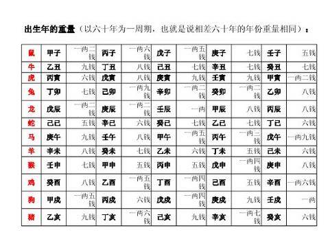 出生年的重量是以六十年為周期的(也就是說相差六十年的年份重量相同)