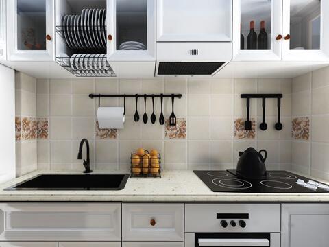 除了吸油煙機、灶具以外,廚房里的電器大都體積不大,必須外置。但像微波爐、電飯煲、電烤箱等小件電器,可以通過巧妙地櫥柜設(shè)計,把這些電器放在于櫥柜中,在櫥柜下方做一個支架,把微波爐架在上面,這樣就可以節(jié)約臺面上的空間。同時,架子的有序擺放,也能讓廚房顯得整齊。