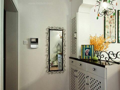 中西合璧的玄關裝飾最忌兩種風格特征太過明顯,這樣難免會主次不分,雜亂無章。狹小的玄關空間,最好避免玄關柜的直角造型,尤其是玻璃易對人造成傷害,在家具和裝飾選擇上應避免此種情況發生。