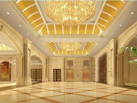 大堂是接待客人時間最長、最集中的場所,在經(jīng)營中不便維修,因為這將影響飯店的信譽和形象。所以設(shè)計時需要盡可能長入地保持良好外觀。選用耐臟、耐磨、易清潔的飾面、地面與墻面,采用具有連續(xù)性的圖案和花色,以加強空間整體感。同時,還應減少噪聲影響。