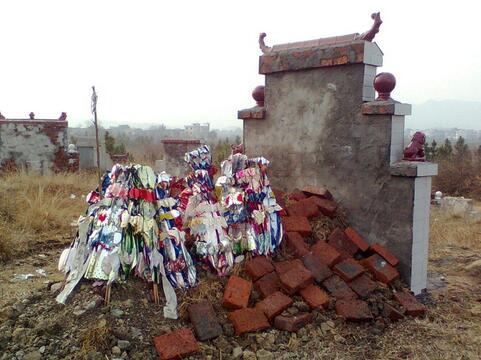 一般都種有松樹、柏樹,象征著死人的意念永存。此外,種上松柏樹還有水土保持、保護(hù)墳冢的作用。當(dāng)然,人們?yōu)榱吮阌谡业阶约河H人的墳?zāi)苟谄渑赃叿N上樹木,一待長大,數(shù)里之外便可看到自己要祭掃的地方。
