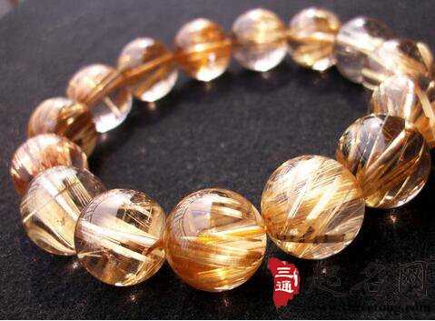 含針狀或板狀礦物質(zhì)鈦之發(fā)絲,鈦晶氧化后呈閃亮的金色,有些珠子還會含有極少的棕黑色發(fā)頭礦物質(zhì)),是現(xiàn)今最珍貴的水晶,磁場特強(qiáng),因外型討人喜歡而又極為稀少,也是市場上價位最高的水晶。