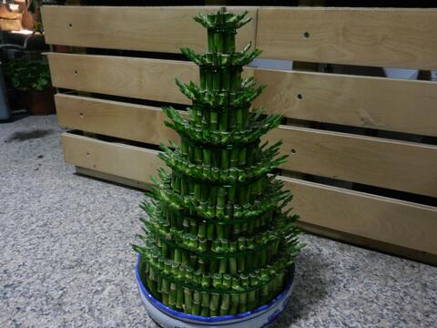 觀賞價值:用富貴竹制作構成的富貴竹塔,層次錯落有致,造形高貴典雅,節節高升,寓意朝氣蓬勃、奮發向上。置于案頭、茶幾,平添一絲春意,予人清新自然,催人廉潔自津,不斷向上。