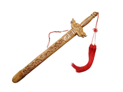 桃木劍是一種非常靈威的風水法器,只是使用各有不同,其靈威是法界不可或缺的法寶。家中鎮有桃木劍,邪魔懼之,鬼怪不臨。今風水之用,除鎮宅功用外,可借以避免或克制小人之害及官非之災。七星桃木劍或桃木斧,更多了一個化桃花煞的作用,因此又叫桃花斬,能化解婚姻情感中有第三者出現的煩惱。桃木劍、桃木斧,傳說中有一斧(福)壓百禍,一劍鎮千邪的說法。桃木寓意吉祥、平安。