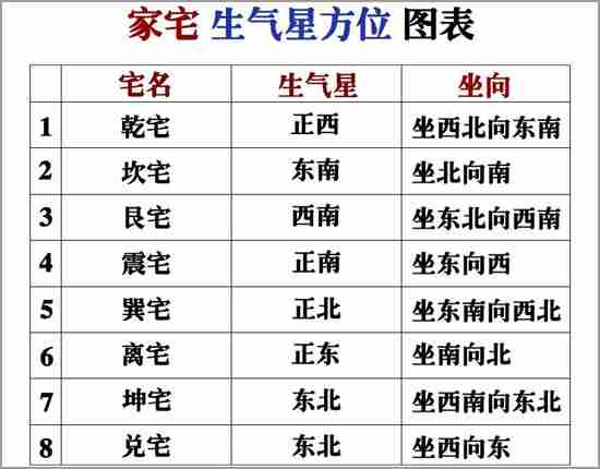 八宅星盤中有一顆星,叫“生氣星”,是首座大吉星。