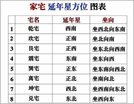 八宅星盤中有一顆星,叫“延年星”,是第二大吉星。