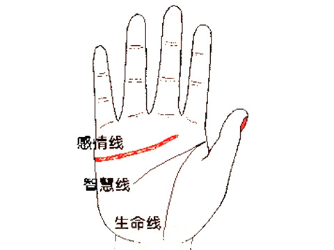 最后一條的主線是我們的感情線,主要看的就是一個人在戀愛以及婚后的感情狀況了,擁有著一條沒有受干擾,感情線單一無雜亂的人,預示著他們的感情也是比較順利,大多數的人感情線都比較復雜,像極了愛情里面的愛恨糾葛,不過這也并不是什么壞事,愛情太過于平順也是沒有多大的意思的,這條線比較難以掌握,想要學習的話還得下番苦功。